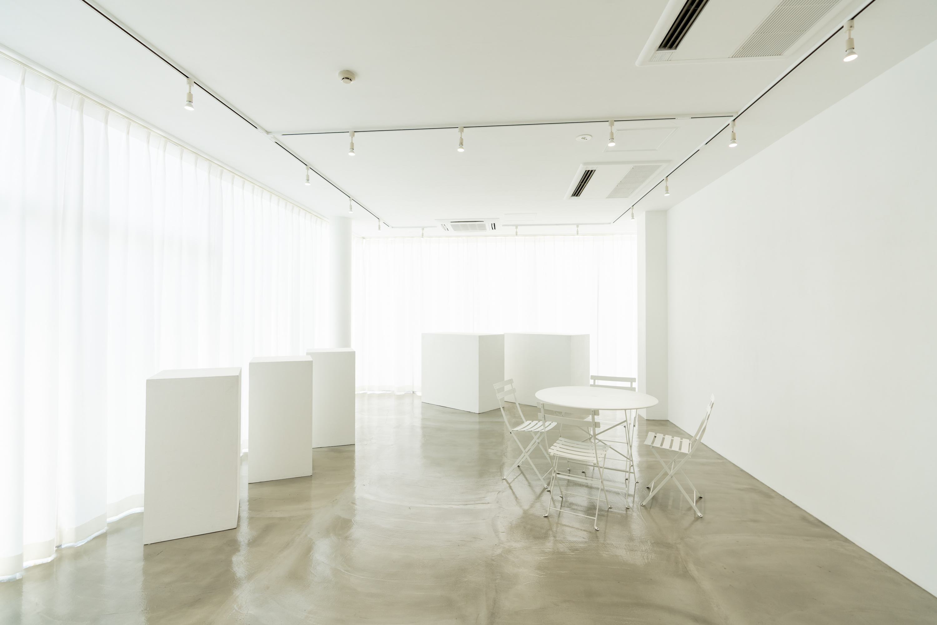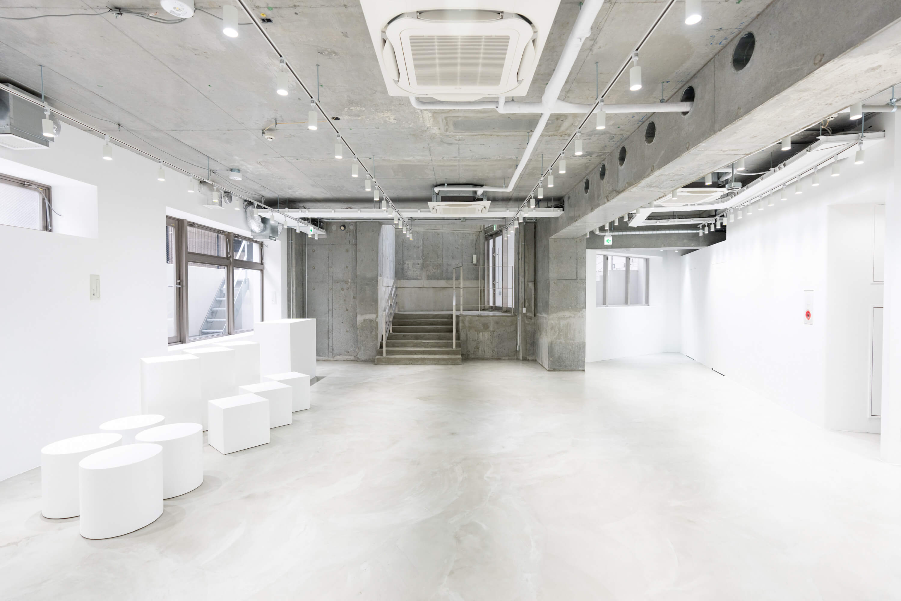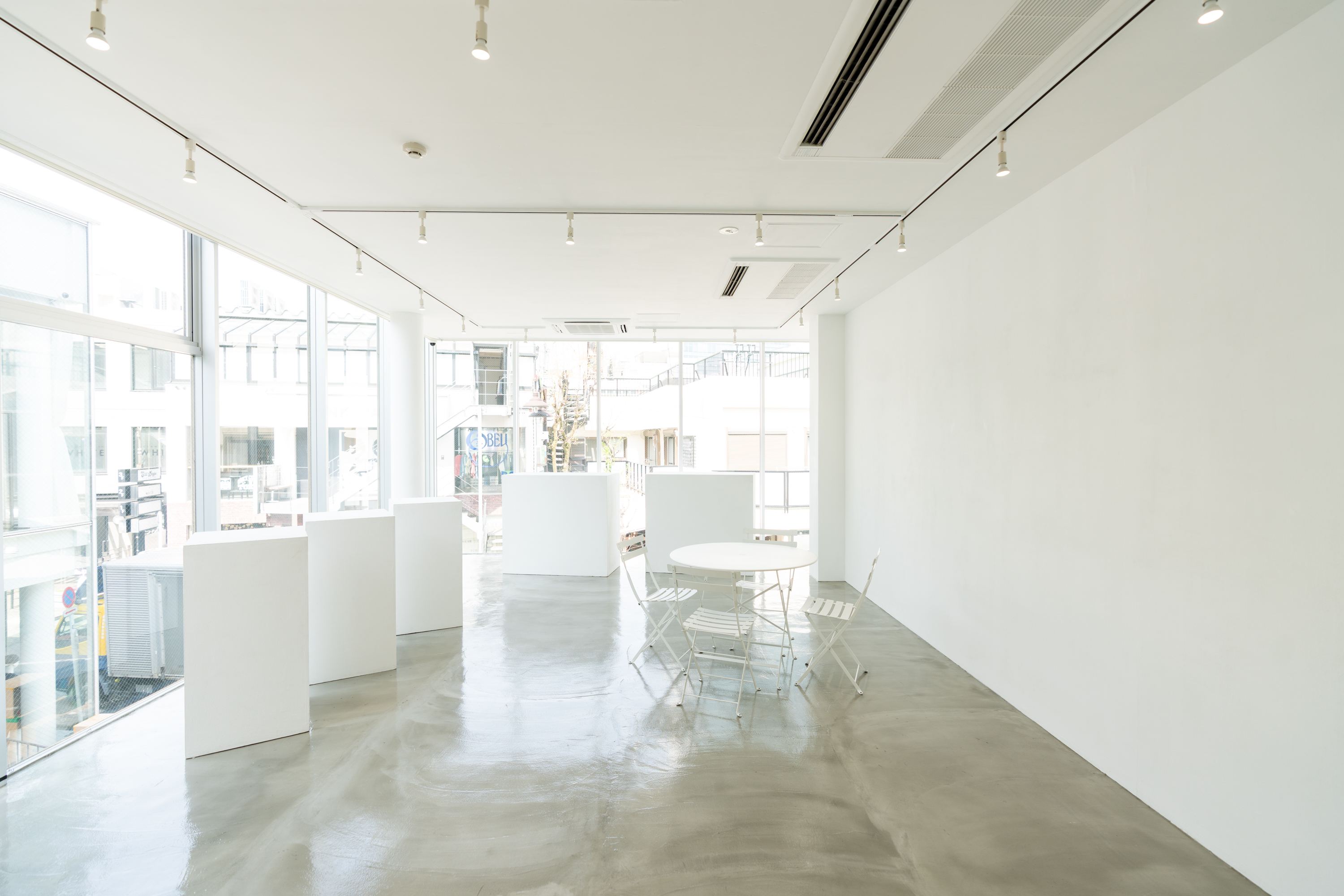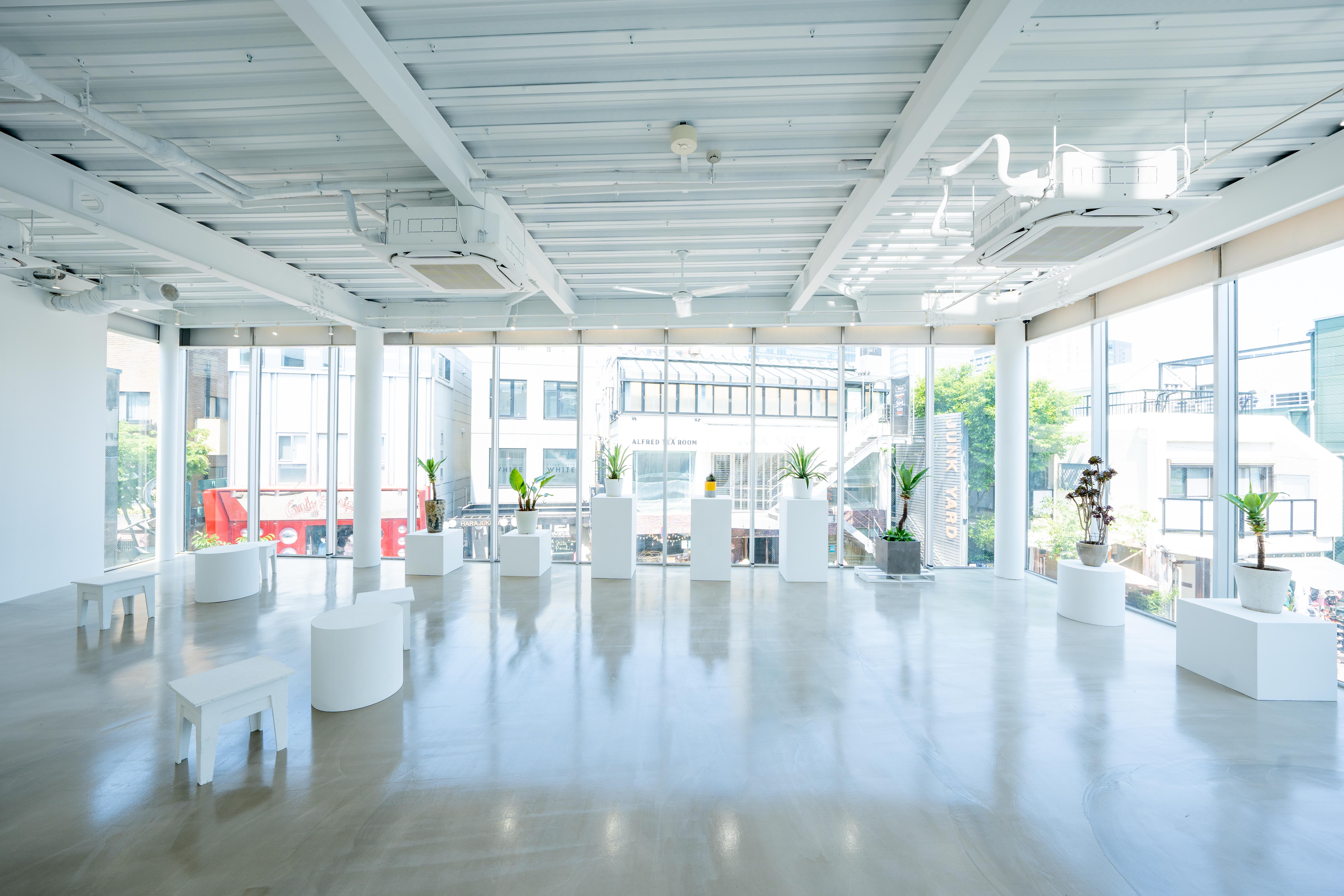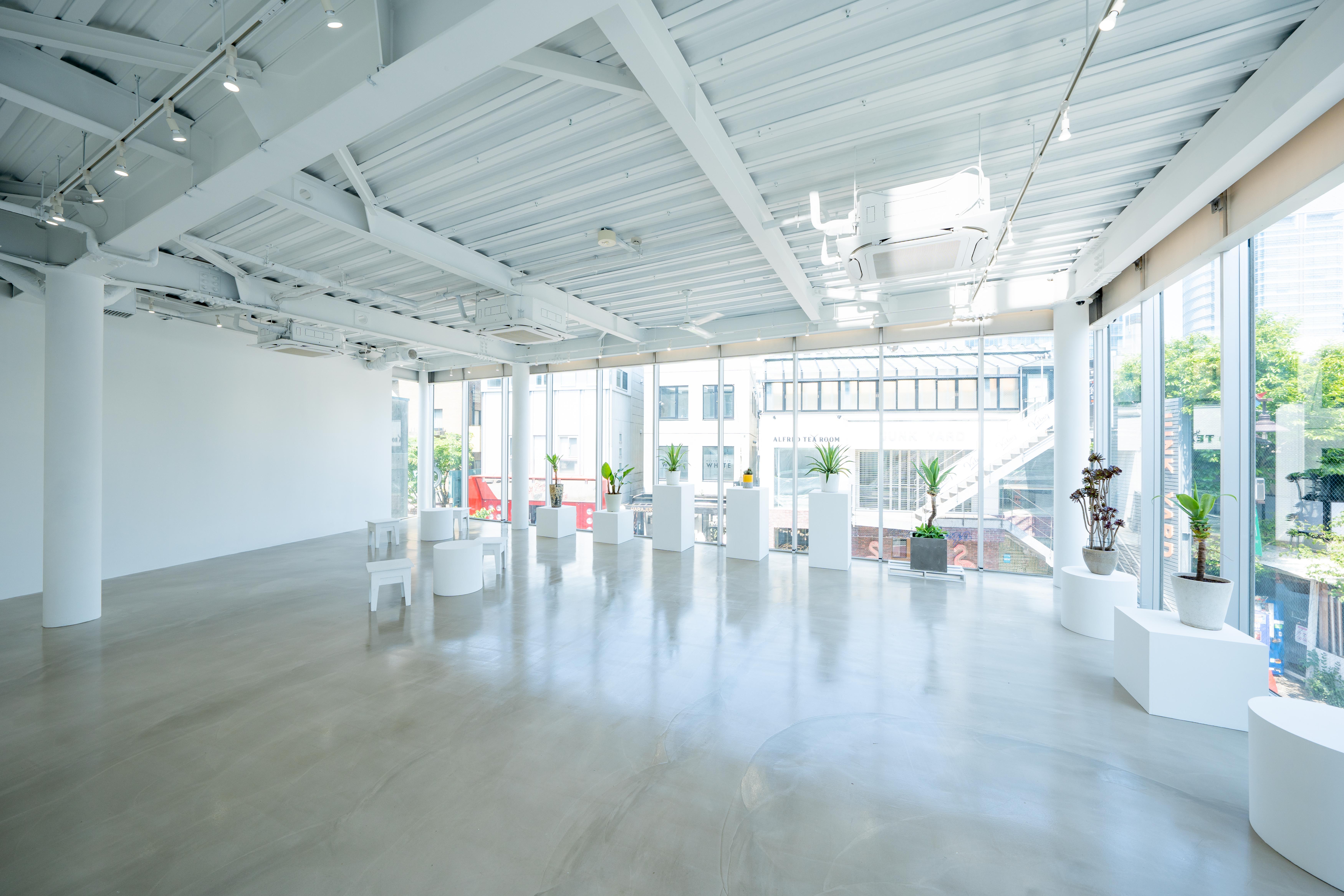 3店舗とも、大きな白壁とクリーンなモルタルフロアを基調とした、シンプルかつミニマルな空間構成が特徴です。展示会、個展、ポップアップ、レンタルギャラリー、ショウルーム、撮影、動画配信、レセプションパーティー、試写会など、目的に合わせて自在に使える設計。ブランドの世界観を損なわないニュートラルなデザインで、幅広いクリエイティブに対応できる柔軟性を備えています。